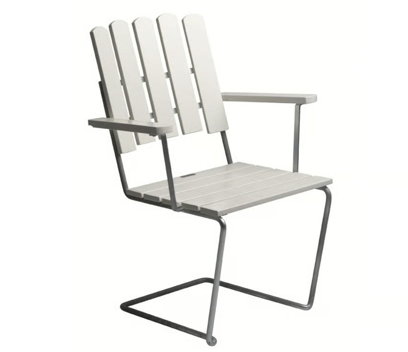 A2 fåtölj från Grythyttans Stålmöbler (adlink) designades år 1930 av Artur Lindqvist. Stativet i massivt fjäderstål har lång livslängd och ger en rogivande svikt. Trädetaljerna är FSC- och PEFC-certifierade och fåtöljen är helt återvinningsbar. Dessutom är denna modell stapelbar vilket gör att de är smidiga att vinterförvara i förråd eller garage. Finns i flera olika färger!