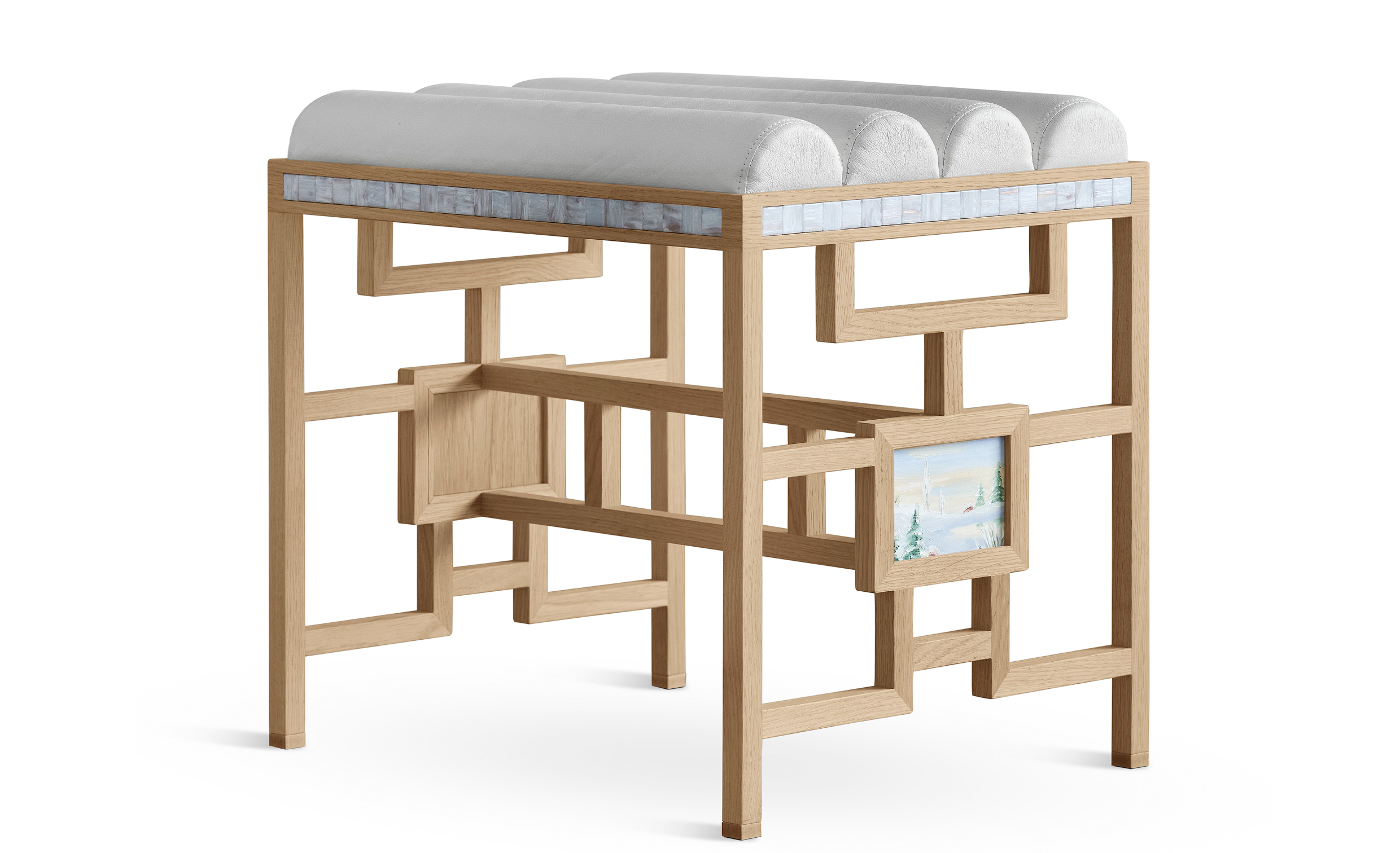 När Ernst Billgren skapade utställningen Nya minnen för Nationalmuseum tog han ett helhetsgrepp om upplevelsen. Som konstnär och scenograf målade och formgav han både konstverken och rummens inredning. I samarbete med Källemo tog han fram Nationalpallen som nu säljs i begränsad och numrerad upplaga. Fint att den karaktäristiska mosaiken och hans målningar smugits in i benstativet.