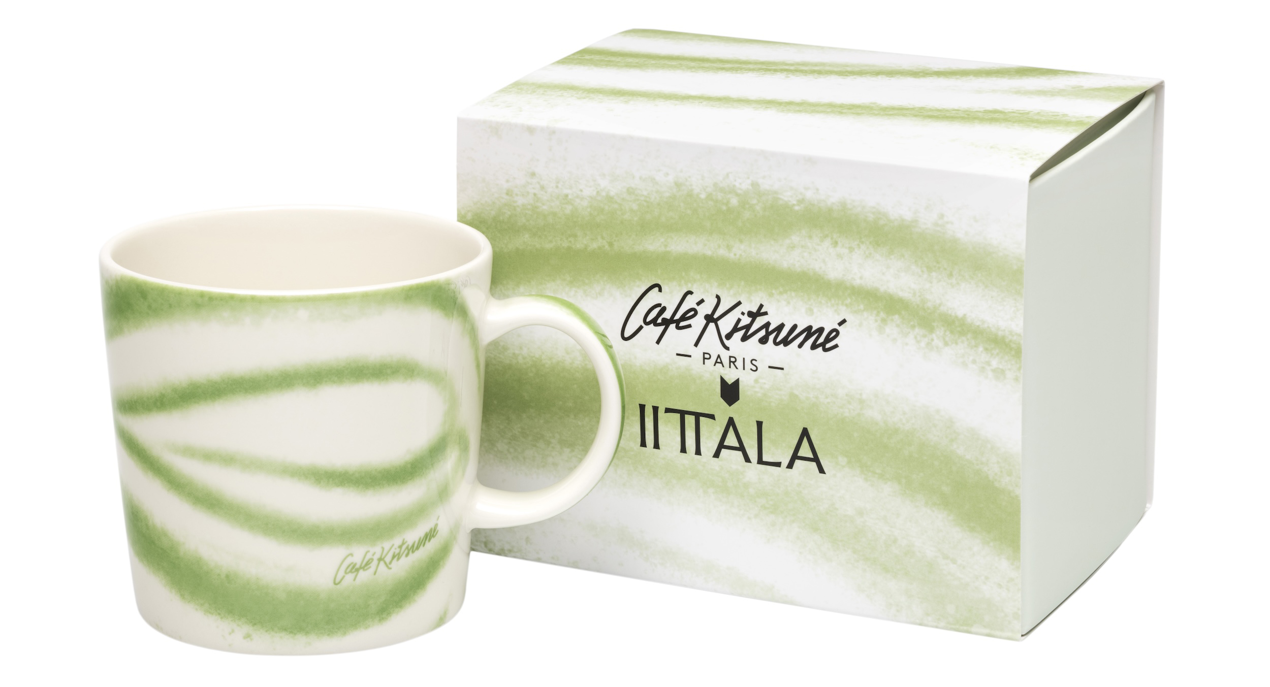 Café Kitsuné X Iittala har resulterat i en begränsad upplaga porslinsmuggar som förenar Teema-seriens tidlösa design av Kaj Franck med Café Kitsunés fransk-japanska estetik och den trendiga Matcha-drycken.