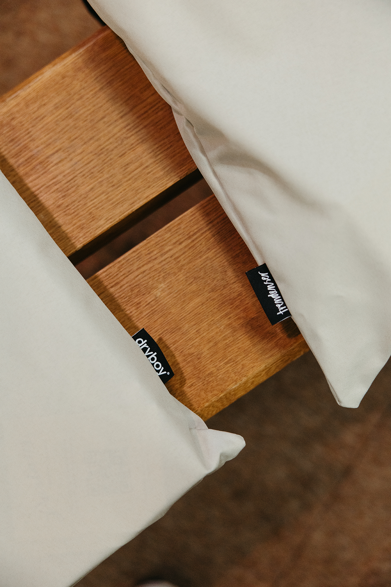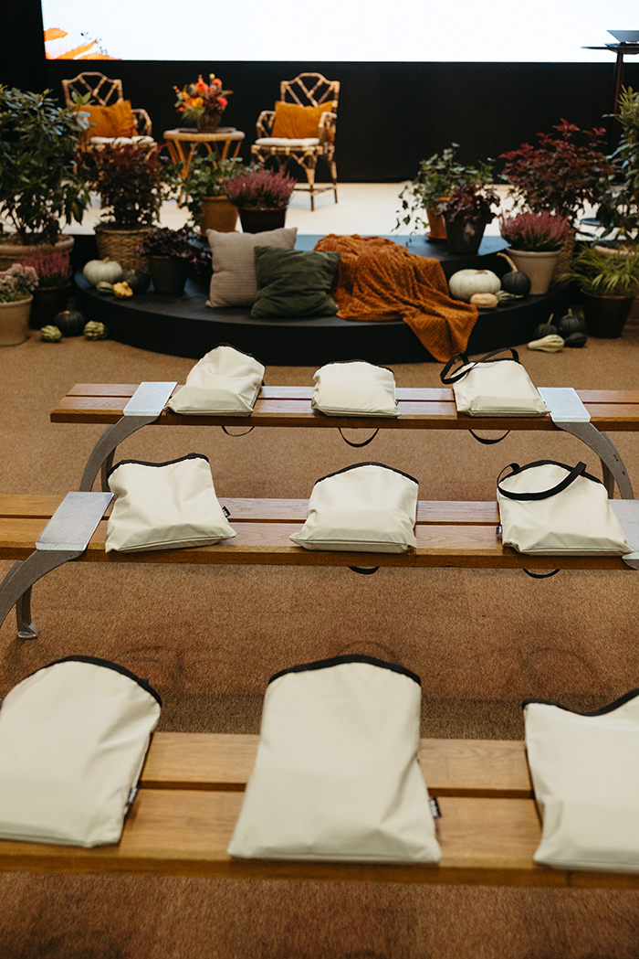 Till pressfrukosten hade vi sytt upp goodiebags av spillbitar från svenska företaget DryBoys produktion av skräddarsydda möbelöverdrag.