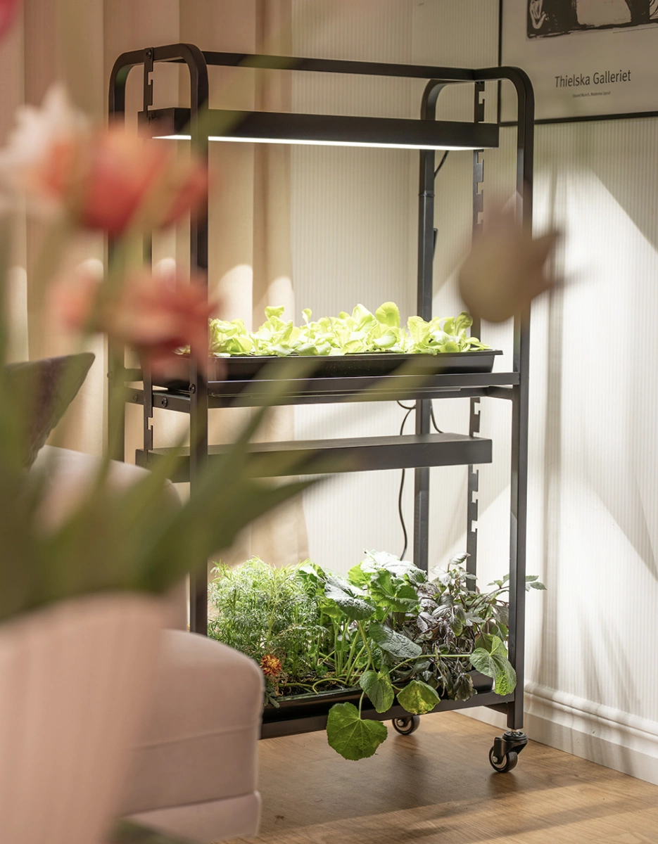 Nu har Impecta Fröhandel lanserat en lösning på detta. Deras nya serie Odlingsvagn Lysa, är en smart idé för alla som vill kunna odla smidigt, året runt. Vagnarna finns i flera olika storlekar och har inbyggd växtbelysning, stadiga hjul och flera hyllplan för tråg, brickor eller krukor.