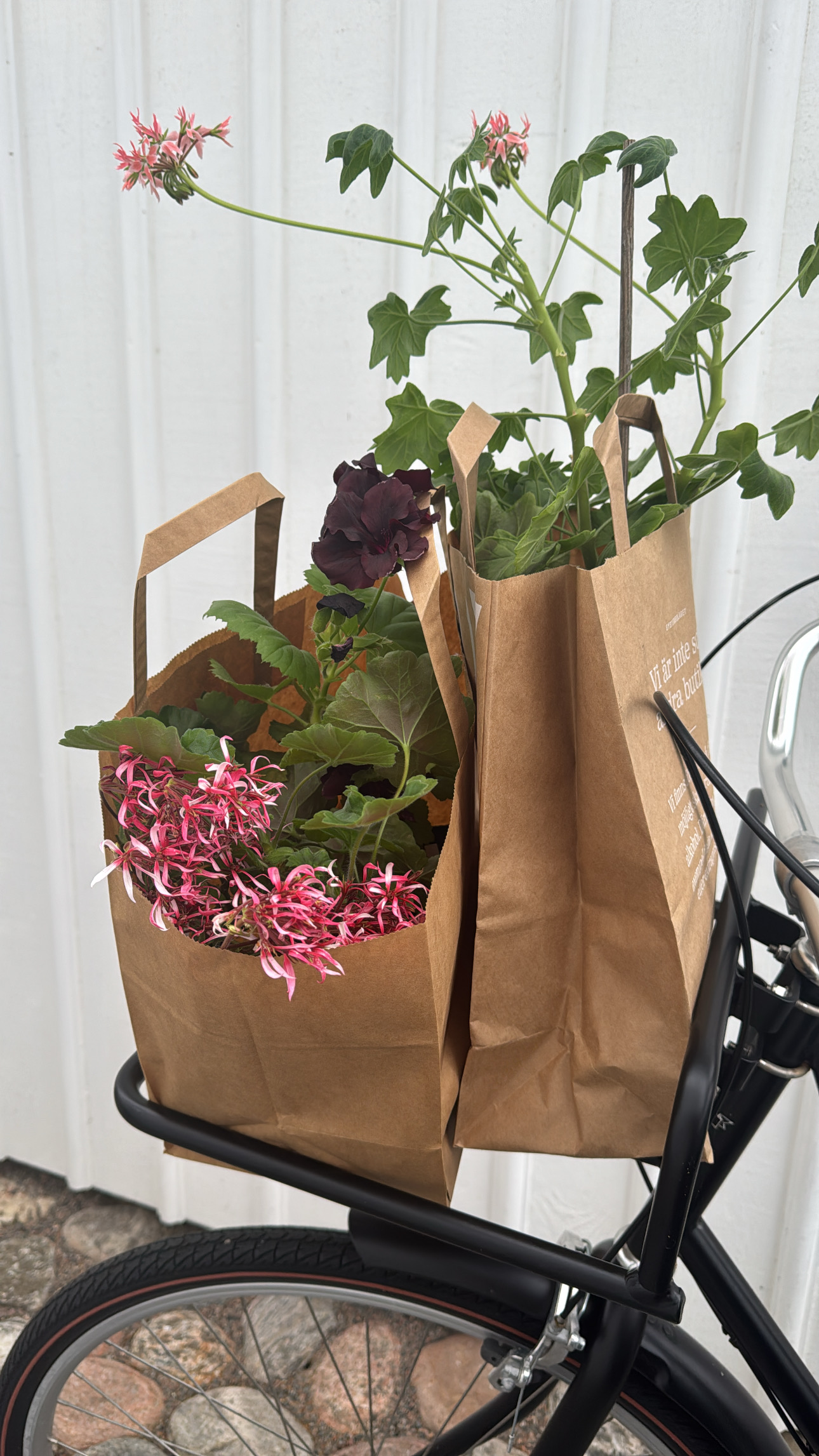 Efter ett par timmar cyklade jag hem med en påse full av sticklingar och en varm känsla i bröstet. Vilken tur jag hade, att våra vägar korsades. Tack Sara, Jan och Gitte!