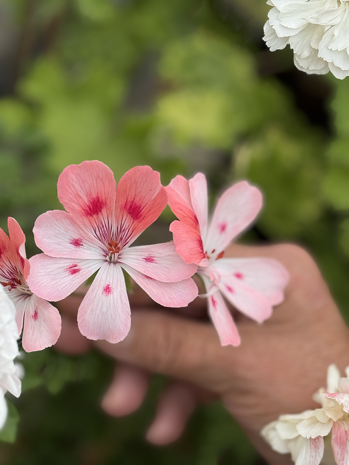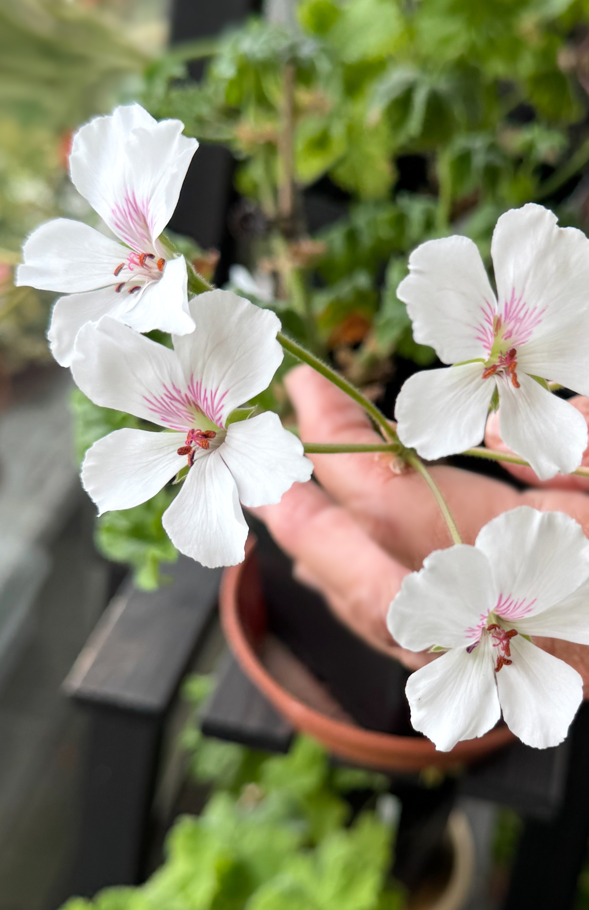Så många vackra och detaljrika pelargonblad och blommor har jag aldrig sett förr.