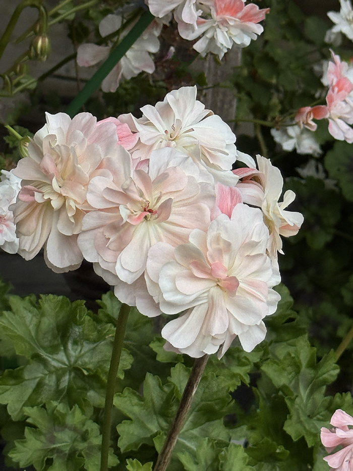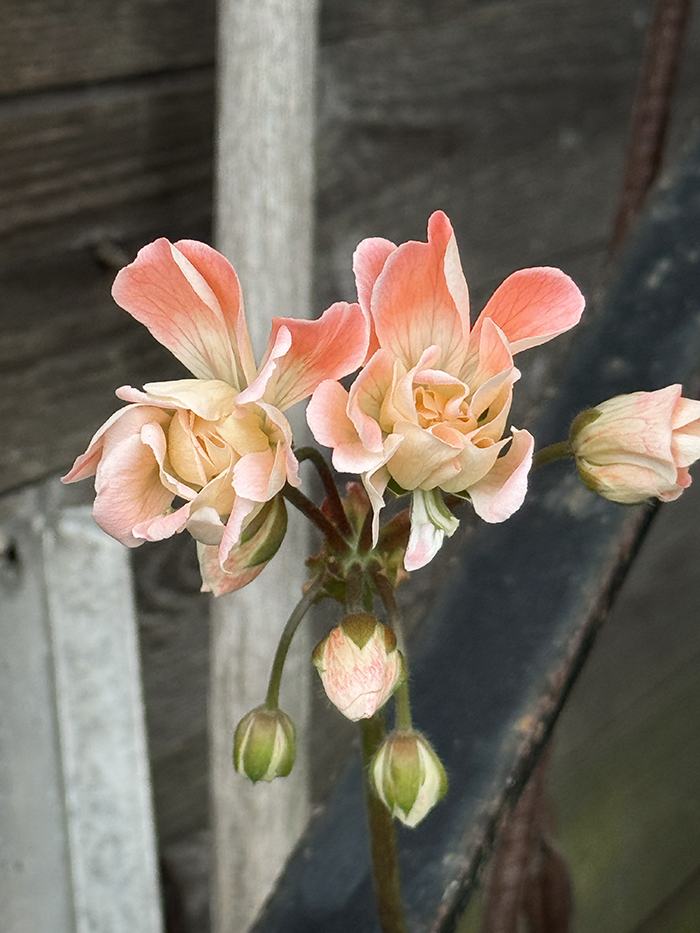 Inte heller så fint fluffiga och mjukt persikofärgade pelargoner heller, med flera lager av kronblad.