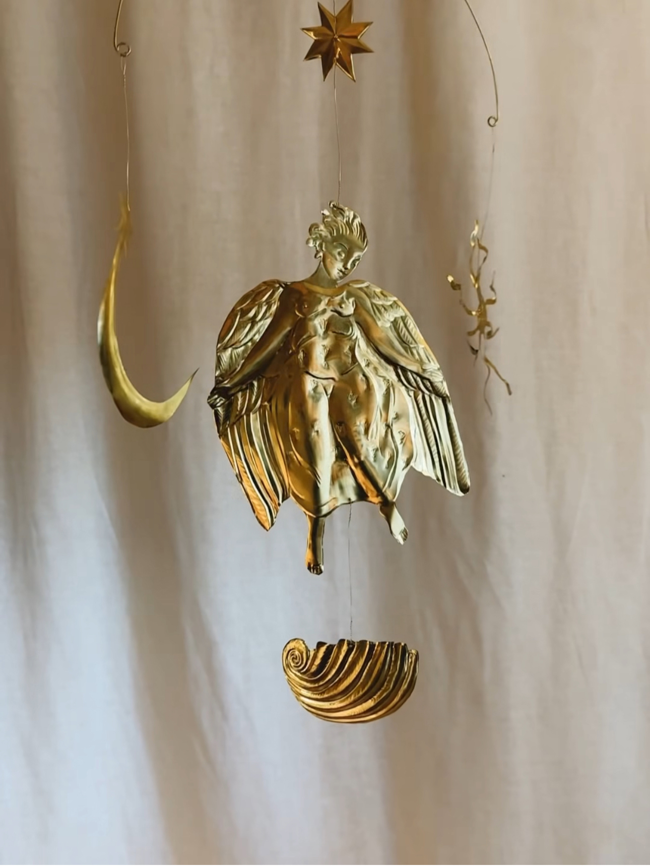 Elin ”Eplet” Sandström är en Stockholmsbaserad illustratör och konstnär, utbildad på Konstfack, som jag tycker ni ska hålla ett öga på. Hon fick ställa ut på Liljevalchs Vårsalong 2025 och inför jul har Millesgården gett henne i uppdrag att skapa juldekorationer baserade på Carl Milles verk. Eplets hängen och mobiler i mässing säljs i Millesgårdens museishop. Fler bilder här!